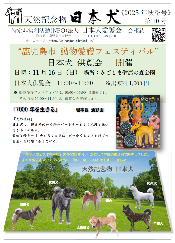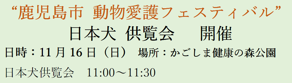 秋の展覧会は、鹿児島市主催・鹿大共同獣医学部共催の”動物愛護フェスティバル”で、日本犬供覧会と云う形で参加する事に致します。 これまでの展覧会での特別賞受賞犬を市民の皆様に披露する事を喜びとしたいと思います。